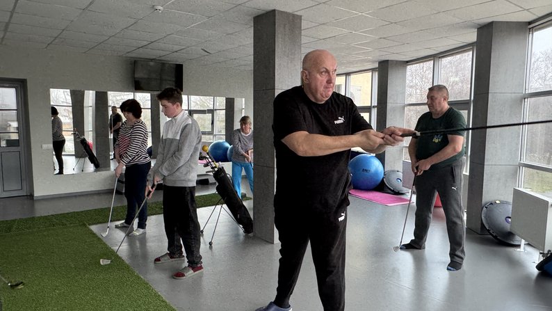 У спорткомплексі «АкваАрена» в Полтаві проводять безкоштовні заняття з гольфу для учасників бойових дій, ветеранів, військовослужбовців, рятувальників та працівників поліції. Тренування відбуваються в рамках обласного проєкту з відновлювальної реабілітації.